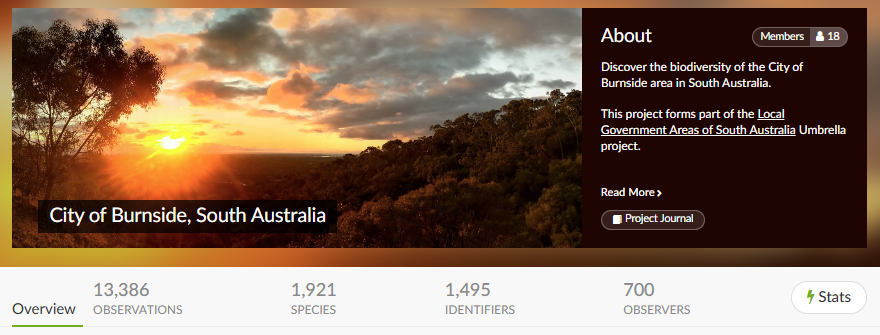 You can see observations made in the City of Burnside, here: www.inaturalist.org/projects/city-of-burnside-south-australia