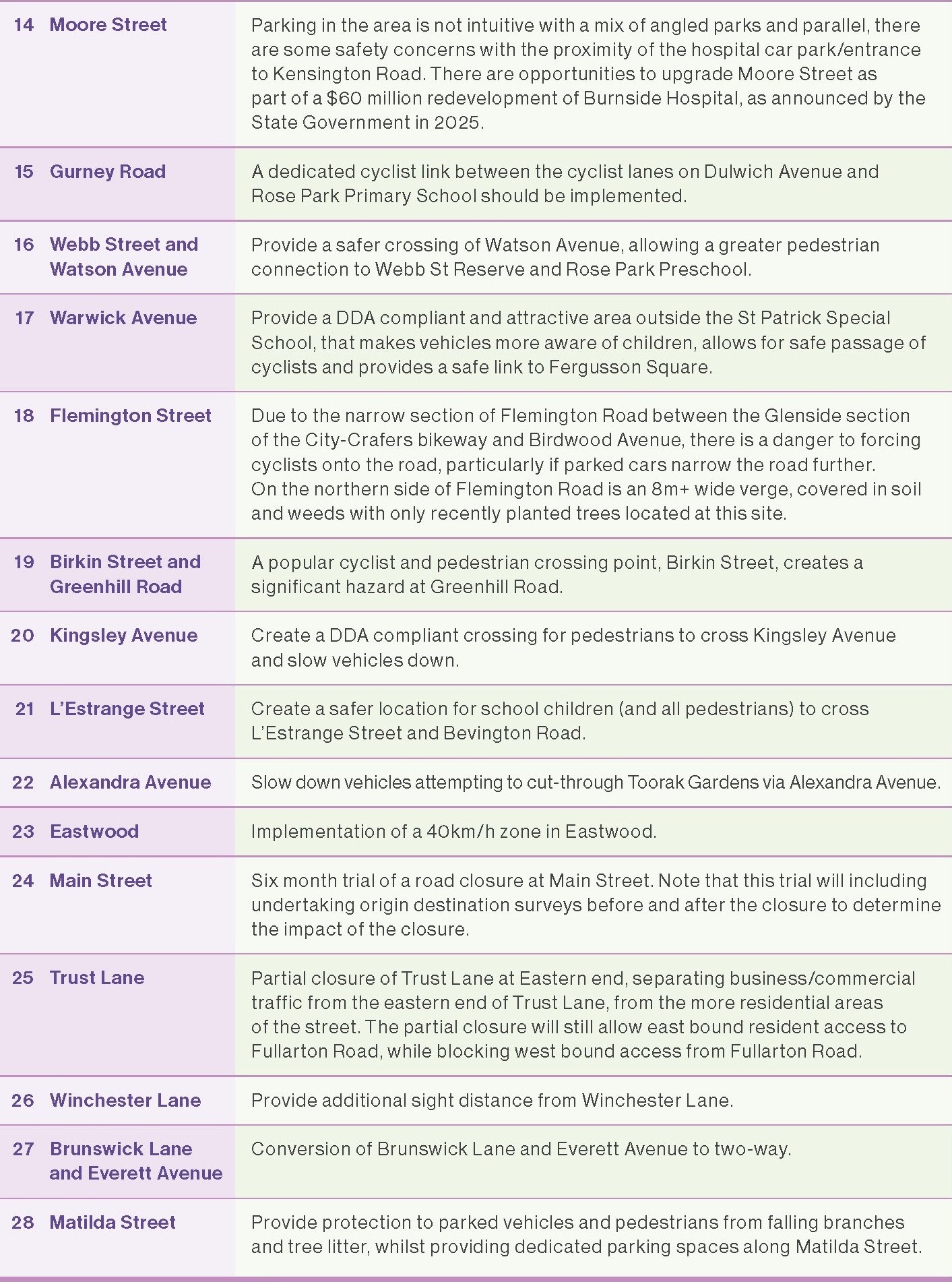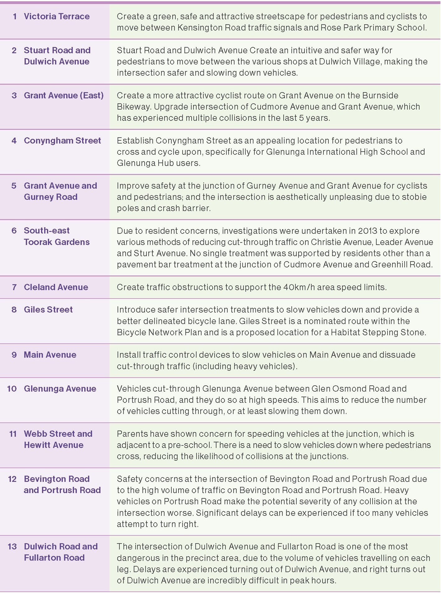 In November and December 2023, the Council sought community input to understand local transport safety, accessibility and liveability issues, concerns and opportunities in Dulwich, Rose Park, Toorak Gardens, Frewville, Glenunga and Eastwood.